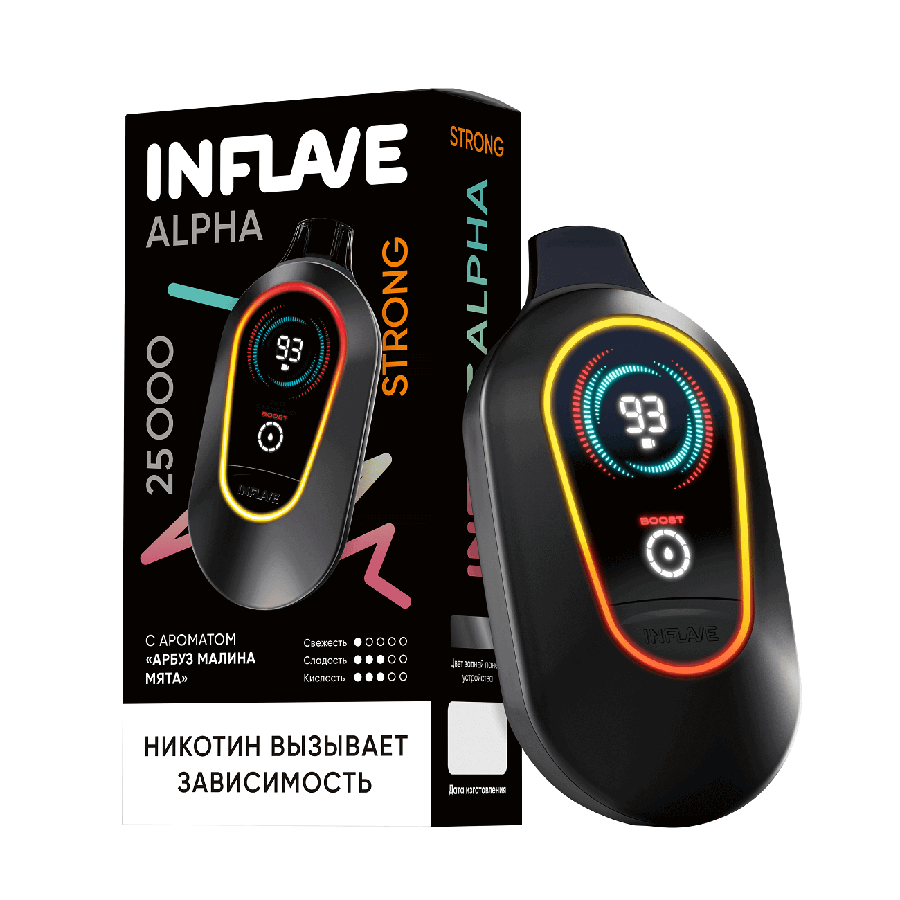 INFLAVE ALPHA 25000 STR — Арбуз Малина Мята Inflave, INFLAVE ALPHA 25000 STR, Одноразовые Э/С
